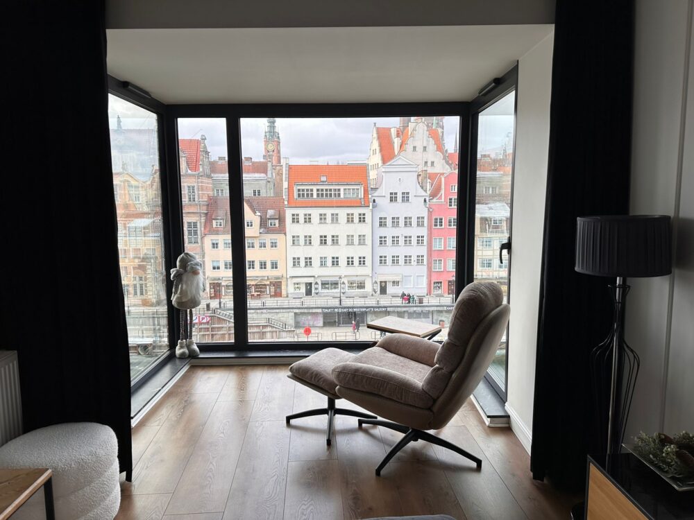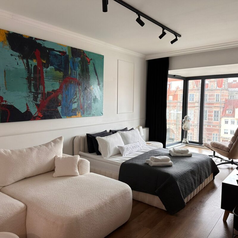 Nowoczesny apartament wyróżniający się eleganckim wystrojem i wysokim standardem wyposażenia. Zlokalizowany w prestiżowym apartamentowcu Deo Plaza na Wyspie Spichrzów – w samym sercu Gdańska, tuż nad Motławą, obok Zielonego Mostu. Wszystkie najważniejsze atrakcje miasta znajdują się w zasięgu krótkiego spaceru – na Długi Targ można dojść w 4 minuty, a do Bazyliki Mariackiej w niespełna 10 minut. W okolicy czeka szeroki wybór restauracji, klimatycznych kawiarni i barów.