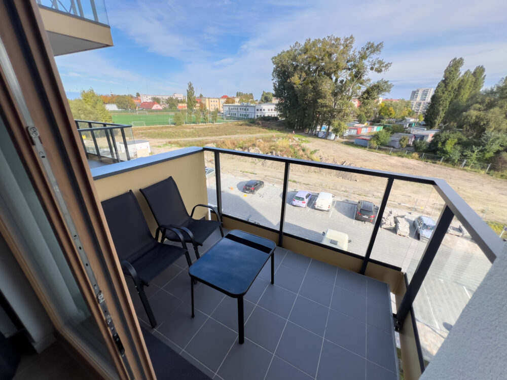 Rozkład: pokój dzienny z aneksem kuchennym, oddzielna sypialnia, łazienka oraz balkon