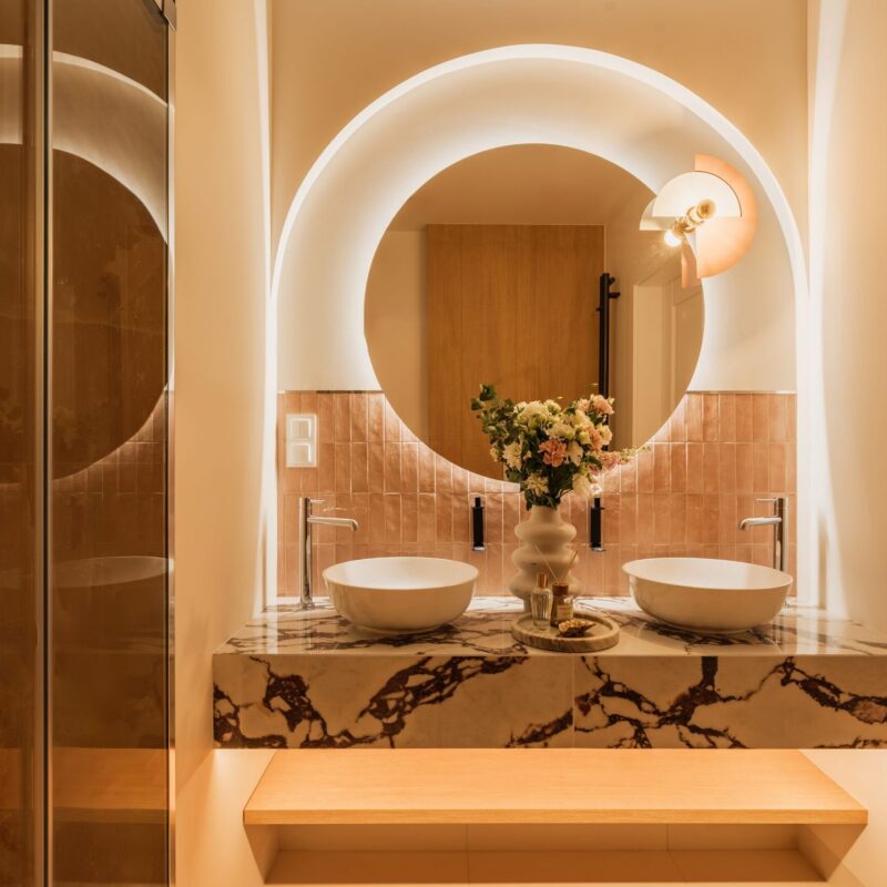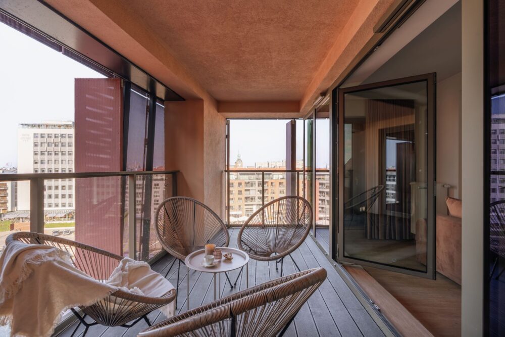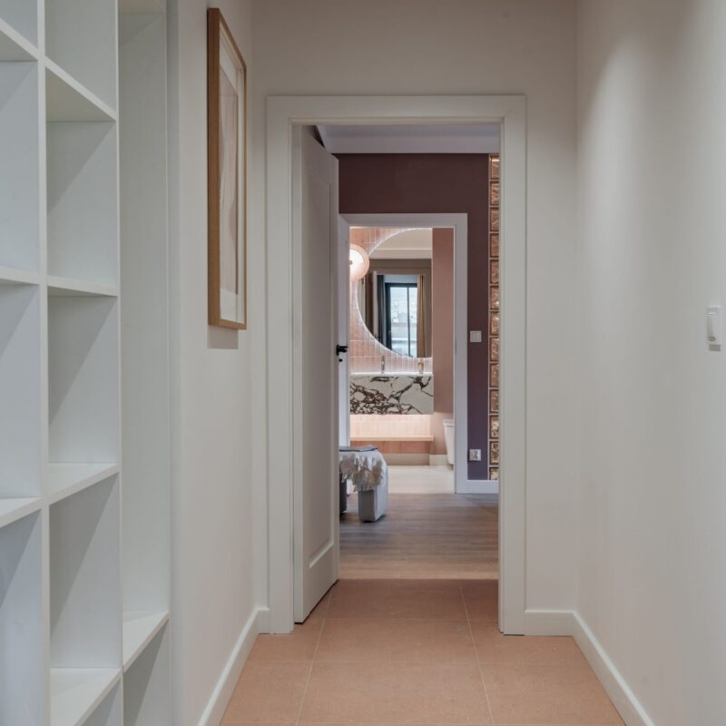 Rozkład: dwie oddzielne sypialnie, przestronny salon z aneksem kuchennym, garderoba, dwie łazienki oraz balkon.