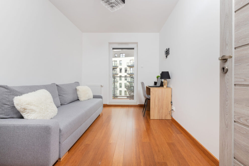 Przestronny, elegancki apartament w nowoczesnym budownictwie. Na miejscu dostępny jest prywatny parking oraz winda. Wspaniała lokalizacja na Wyspie Spichrzów, w pobliżu Gdańskiej Starówki. W niedalekim sąsiedztwie znajduje się Centrum SPA & Wellness z bogatą ofertą zabiegów, strefą fitness, saunami oraz basenem.