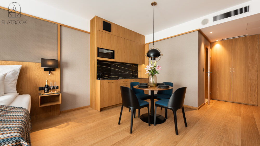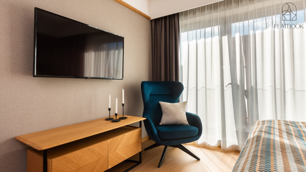 Elegancko urządzony apartament z nowoczesnym designem. Zlokalizowany w prestiżowym apartamentowcu Deo Plaza na Wyspie Spichrzów – w samym sercu Gdańska, tuż nad Motławą, obok Zielonego Mostu. Wszystkie najważniejsze atrakcje miasta znajdują się w zasięgu krótkiego spaceru – na Długi Targ można dojść w 4 minuty, a do Bazyliki Mariackiej w niespełna 10 minut. W okolicy czeka szeroki wybór restauracji, klimatycznych kawiarni i barów.