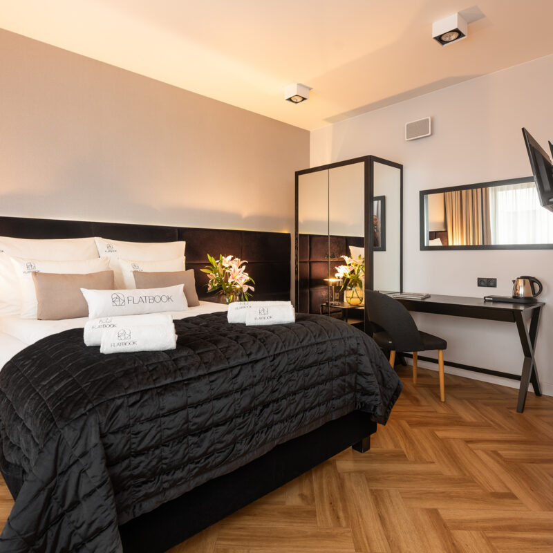 Elegancko urządzony apartament z nowoczesnym designem. Zlokalizowany w prestiżowym apartamentowcu Deo Plaza na Wyspie Spichrzów – w samym sercu Gdańska, tuż nad Motławą, obok Zielonego Mostu. Wszystkie najważniejsze atrakcje miasta znajdują się w zasięgu krótkiego spaceru – na Długi Targ można dojść w 4 minuty, a do Bazyliki Mariackiej w niespełna 10 minut. W okolicy czeka szeroki wybór restauracji, klimatycznych kawiarni i barów.