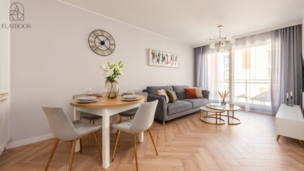 Jasny i elegancki apartament w nowoczesnym budownictwie, położony w spokojnej i atrakcyjnej części Gdańska, w pobliżu historycznego centrum miasta. Idealne miejsce dla osób, które cenią komfort, nowoczesny design i bliskość najważniejszych atrakcji. W budynku znajduje się restauracja oraz Centrum SPA & Wellness z bogatą ofertą zabiegów, strefą fitness, saunami oraz basenem. Korzystanie ze strefy wellness wiąże się z dodatkową opłatą, a wejście na basen wymaga wcześniejszej rezerwacji konkretnej godziny. Oferta ze śniadaniem obejmuje bogaty bufet serwowany w restauracji przy ul. Jaglanej 6. Śniadania dostępne są również dla dzieci od 7. roku życia.