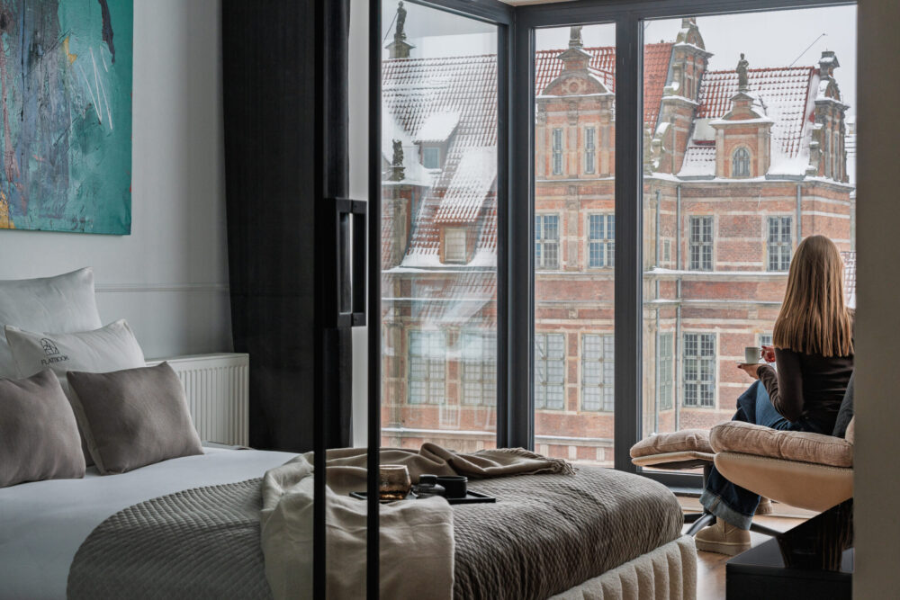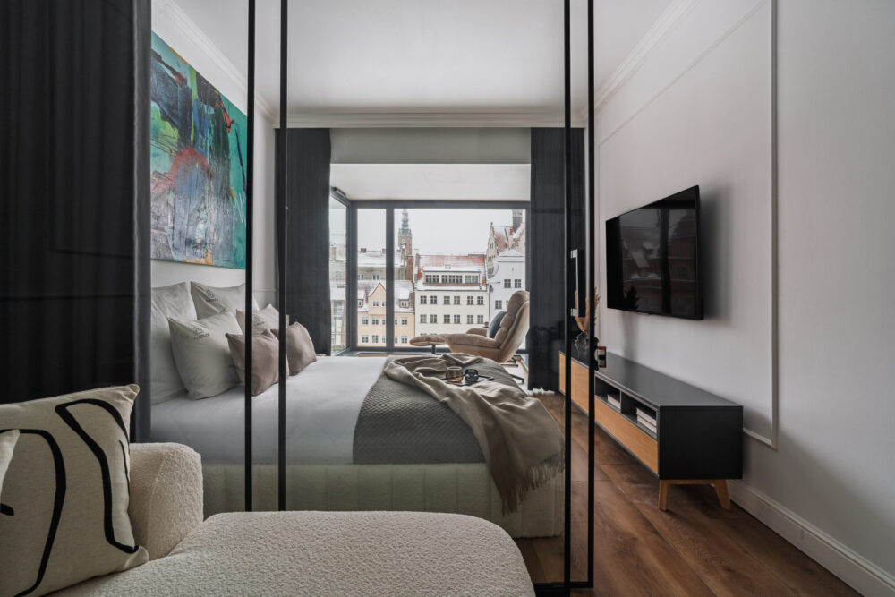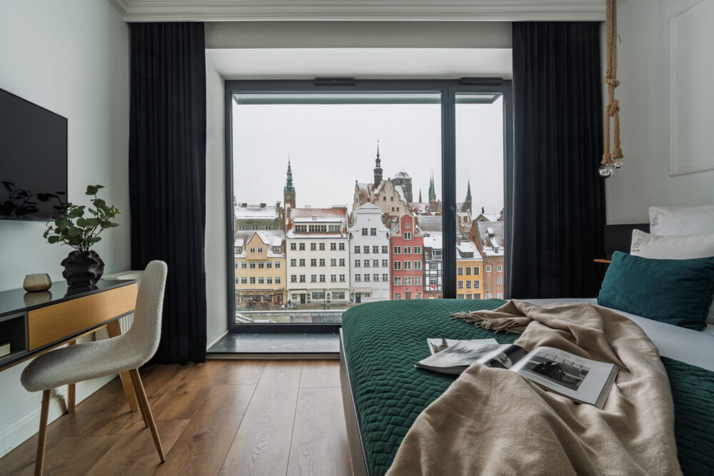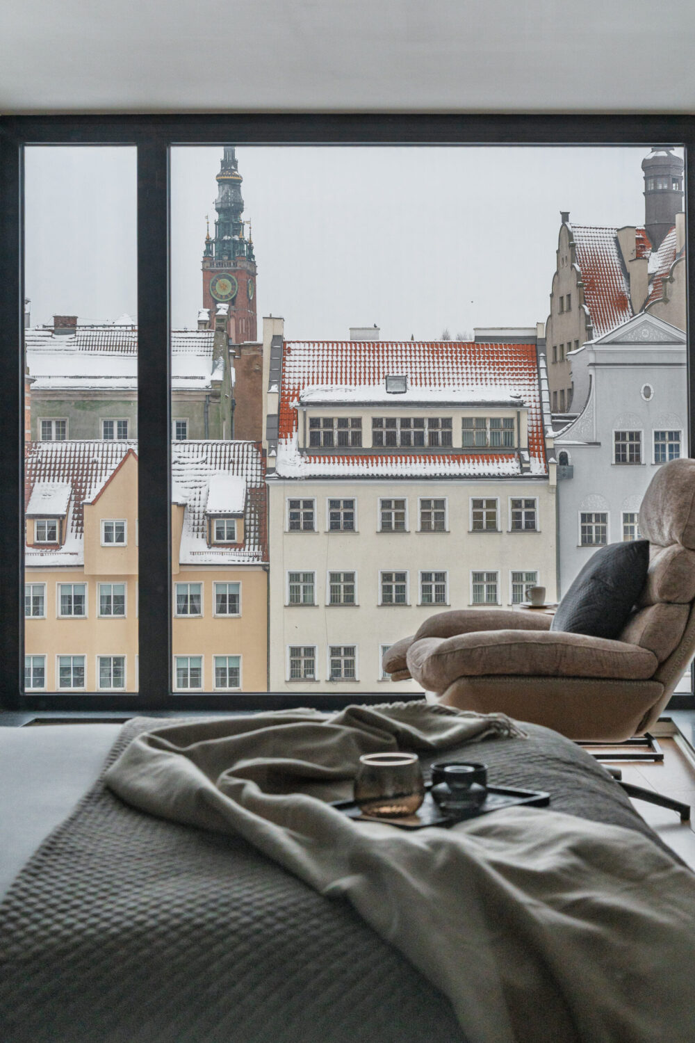 A modern apartment distinguished by its elegant interior design and high standard of furnishings. Located in the prestigious Deo Plaza residence on the Granary Island – in the very heart of Gdańsk, right by the Motława River, next to the Green Bridge. All the city’s main attractions are within a short walking distance – the Long Market is just a 4-minute walk, and St. Mary’s Basilica can be reached in under 10 minutes. The area offers a wide selection of restaurants, cozy cafés, and bars, while large windows provide panoramic views of Gdańsk’s historic center and the Motława River.