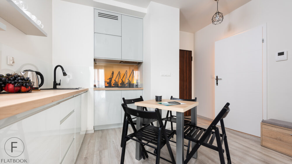 Bright and elegant apartment in a modern building, located in a quiet and attractive part of Gdańsk, near the historic city center. Ideal place for those who value comfort, modern design, and proximity to the most important attractions. Nearby is a SPA & Wellness Center with a wide range of treatments, a fitness area, saunas, and a swimming pool.