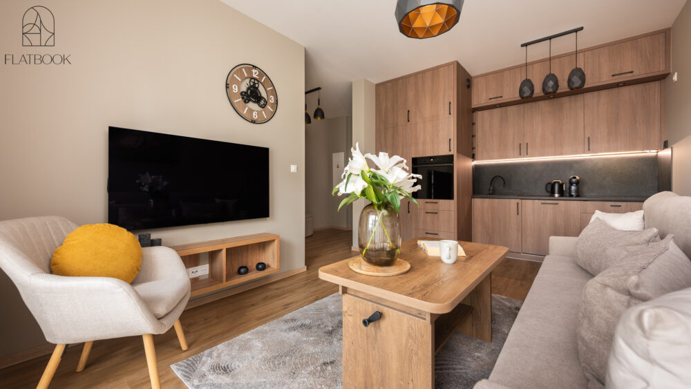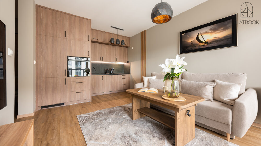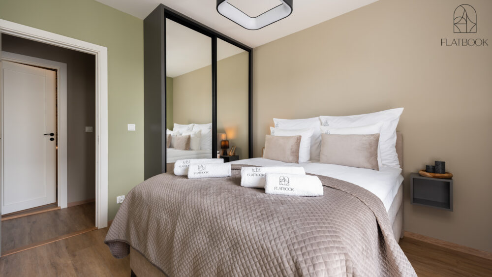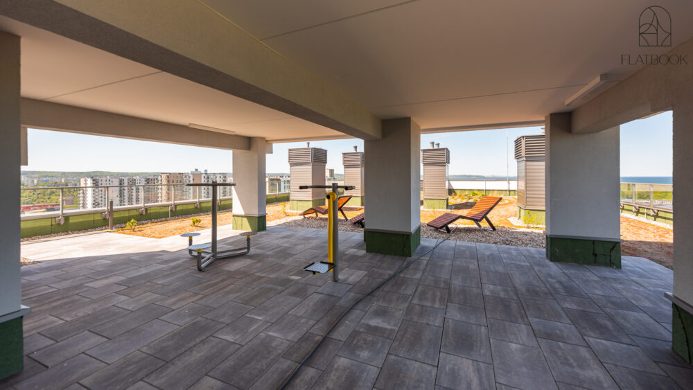 A bright and elegant apartment located in the dynamically developing Letnica district, close to the sea. The modern building and excellent location in a quiet and peaceful area provide a perfect combination of comfort, contemporary style, and proximity to nature. Guests have access to free private parking and an elevator. On the rooftop, there is a scenic terrace with sun loungers and an open-air mini gym — a perfect spot to relax or enjoy an active break while admiring panoramic views of the surroundings.