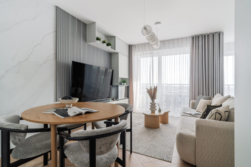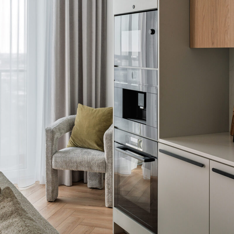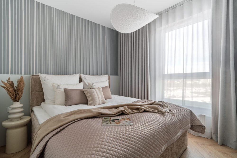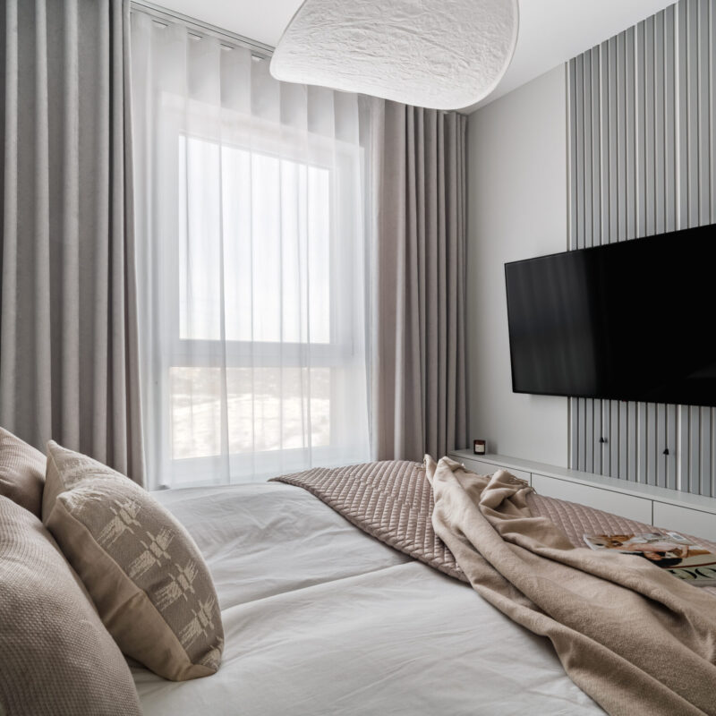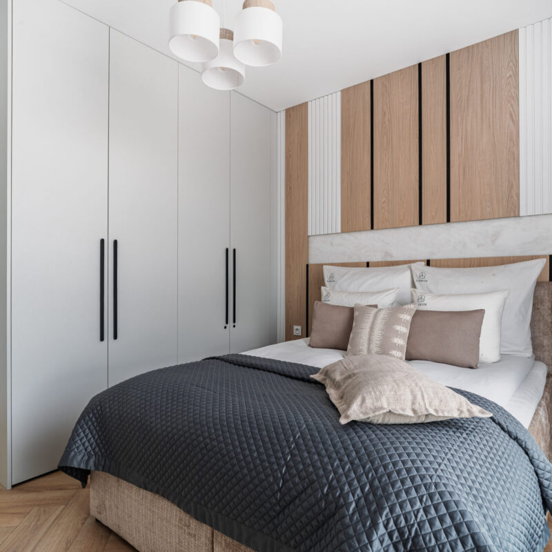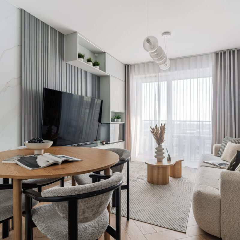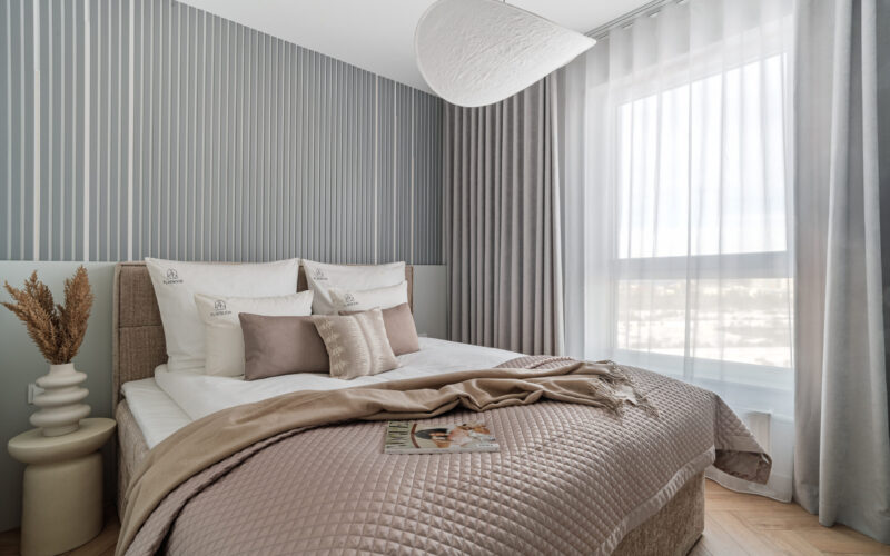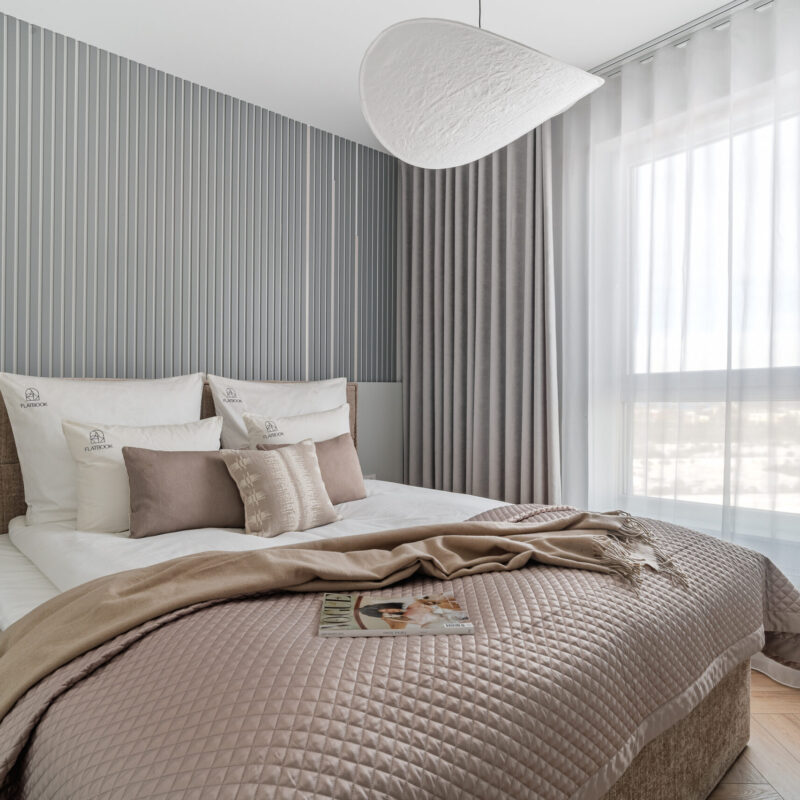 A bright and elegant apartment located in the dynamically developing Letnica district, close to the sea. The modern building and excellent location in a quiet and peaceful area provide a perfect combination of comfort, contemporary style, and proximity to nature. Guests have access to free private parking and an elevator. On the rooftop, there is a scenic terrace with sun loungers and an open-air mini gym — a perfect spot to relax or enjoy an active break while admiring panoramic views of the surroundings.