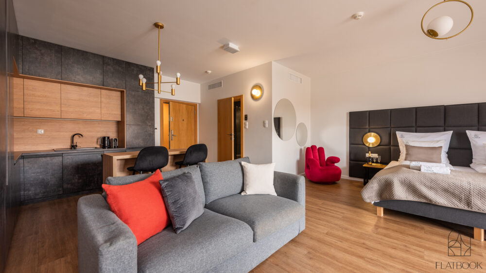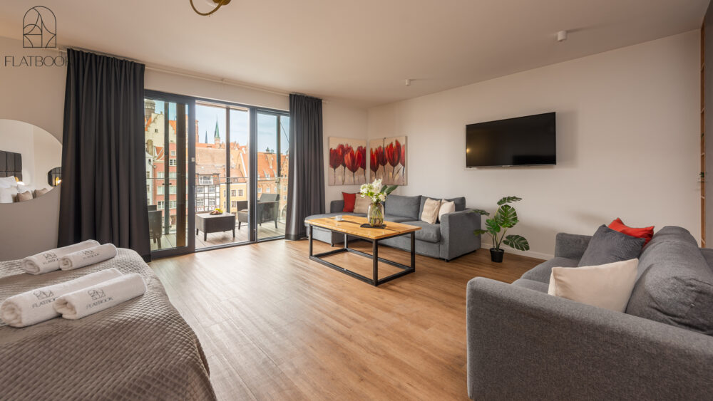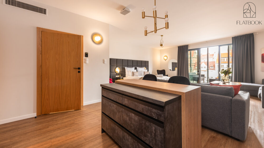 Modern apartment distinguished by elegant decor and high standard of equipment. Located in the prestigious Deo Plaza apartment building on Spichrzów Island – in the very heart of Gdańsk, right by the Motława River, next to the Green Bridge. All the main city attractions are within a short walking distance – you can reach the Long Market in 4 minutes and the St. Mary's Basilica in less than 10 minutes. In the area, there is a wide selection of restaurants, atmospheric cafes, and bars.