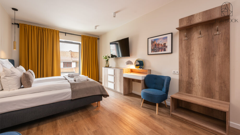 Modern apartment distinguished by elegant decor and high standard of equipment. Located in the prestigious Deo Plaza apartment building on Spichrzów Island – in the very heart of Gdańsk, right by the Motława River, next to the Green Bridge. All the main city attractions are within a short walking distance – you can reach the Long Market in 4 minutes and the St. Mary's Basilica in less than 10 minutes. In the area, there is a wide selection of restaurants, atmospheric cafes, and bars.