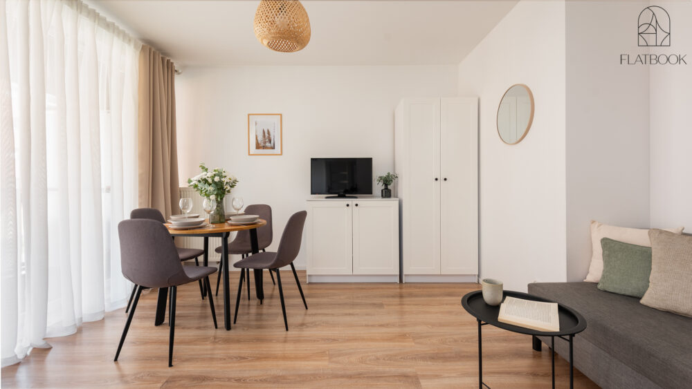 A bright, elegant apartment is located in a modern building. Free private parking and an elevator are available on site. Excellent location on Granary Island, near the Old Town of Gdansk. There are a restaurant and a SPA & Wellness center with a wide range of treatments, a fitness area, saunas and a swimming pool nearby.