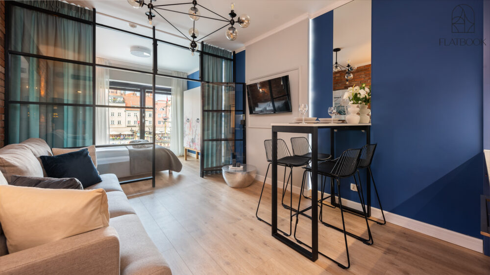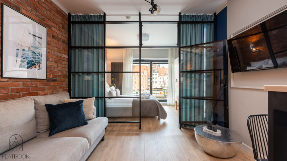 Elegantly furnished apartment with modern design and a beautiful river view. Located in the prestigious Deo Plaza apartment building on Spichrzów Island – in the very heart of Gdańsk, right above the Motława River, next to the Green Bridge. All the main city attractions are within walking distance – you can reach the Long Market in 4 minutes and the St. Mary's Basilica in less than 10 minutes. Nearby, there is a wide selection of restaurants, atmospheric cafes, and bars.